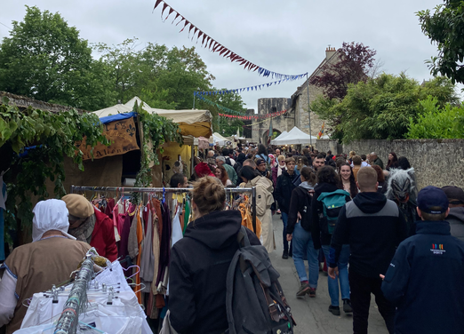 Tout y est pour vous transporter et vous faire revivre la vie de l'époque. Déambulez aux sons des cornemuses, chalumeaux et vieilles roues à percussions, initiez-vous aux danses médiévales, riez devant des spectacles de rue ou regardez les performances de lanceurs de drapeaux.